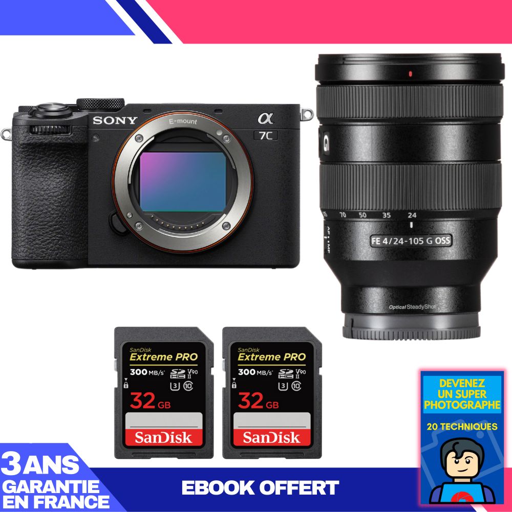 Boitier Sony A7C II Noir + FE 24-105mm f/4 G OSS + 2 SanDisk 32GB Extreme PRO UHS-II SDXC 300 MB/s + Ebook 'Devenez Un Super Photographe