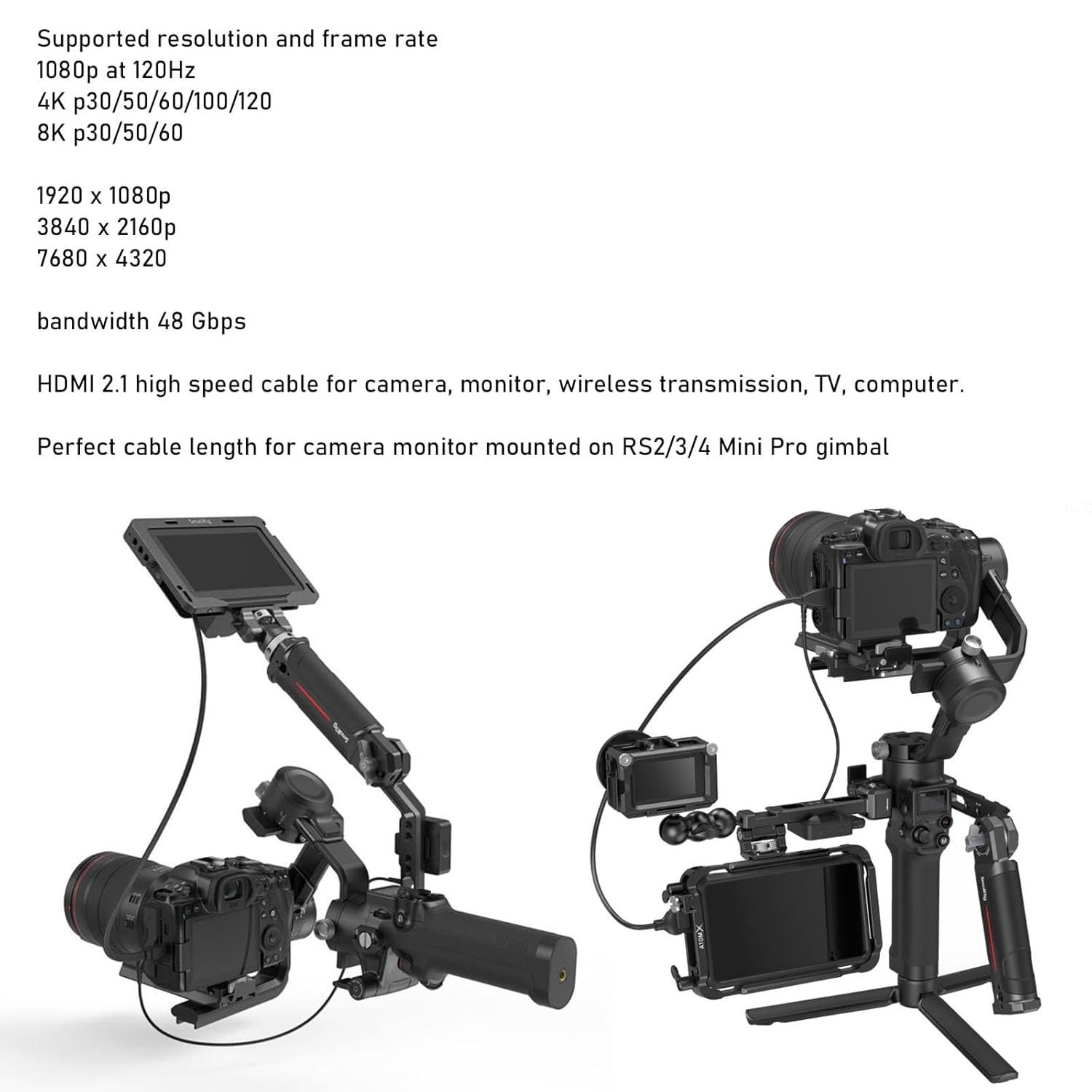 Câble HDMI 8K 60p 4K 120p pour appareil photo ATOMOS Ninja V Sony A7S3 A7RV A7IV Canon C70 Lumix S5II GH5 Z9 FEELWORLD BMD, angle droit et gauche type A HDMI 2.1, spirale tressée 50 cm