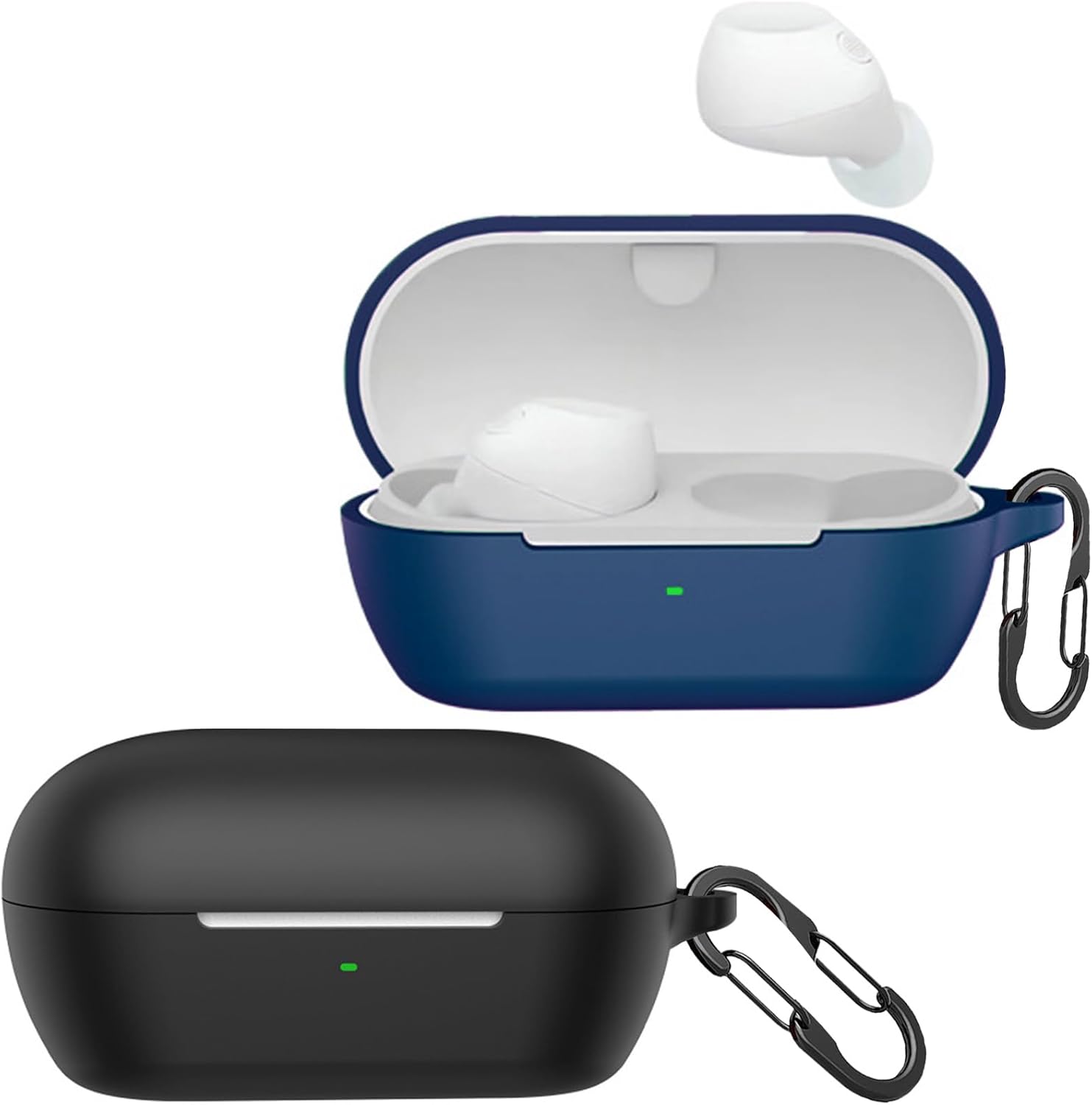Lot de 2 coques compatibles avec Sony WF-C710NSA Truly Wireless Noise Cancelling Earbuds [2 mousquetons], coque en silicone liquide anti-chocs, étui pour casque Bluetooth - Noir et bleu