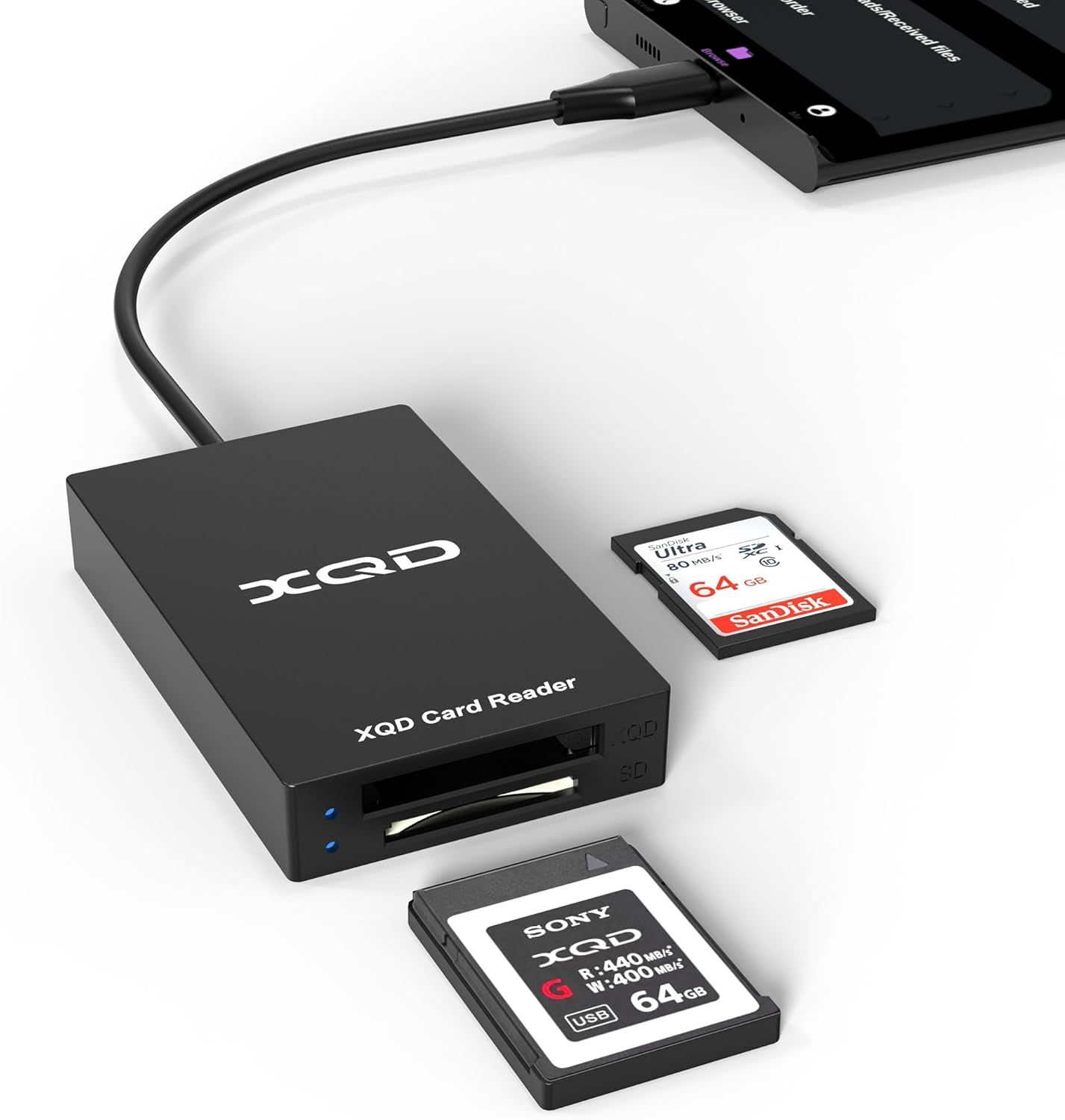XQD/SD Card Reader XQD USB3.0 Memory xqd Card Reader, Supports USB XQD Sony G/M Series, XQD Lexar 2933x/1400x USB Card, SD Cards. Windows/Mac OS