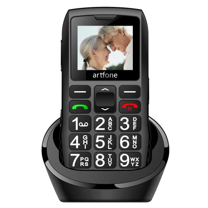 Artfone C1+ Téléphone Portable pour Senior Station de Charge Grandes Touches Bouton SOS Radio FM Batterie 1400mAh 2G GSM