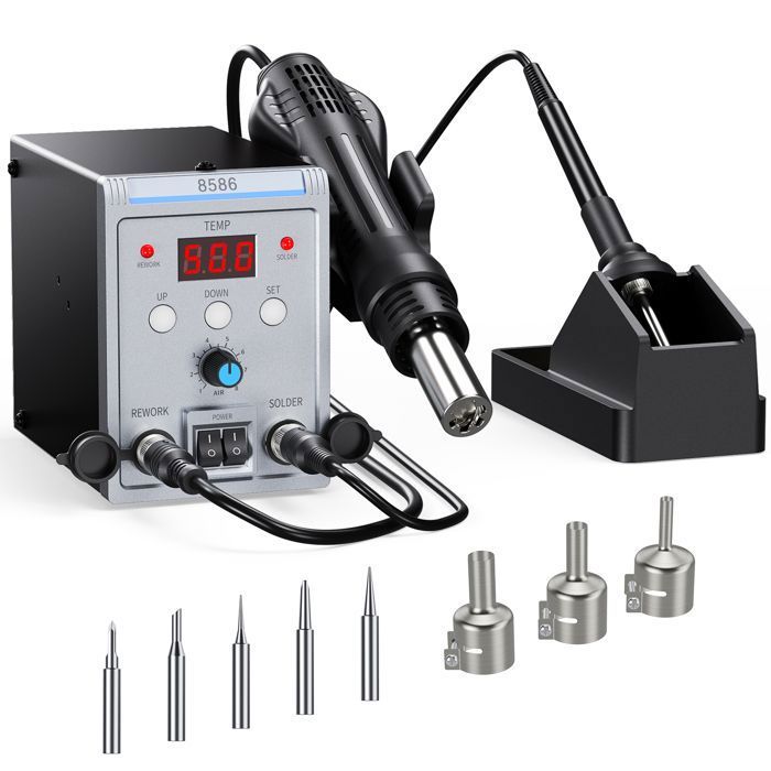 Station de dessoudage antistatique, pistolet à air chaud 2 en 1 et fer à souder avec affichage numérique LED, température réglable pour soudure SMD et réparation électronique
