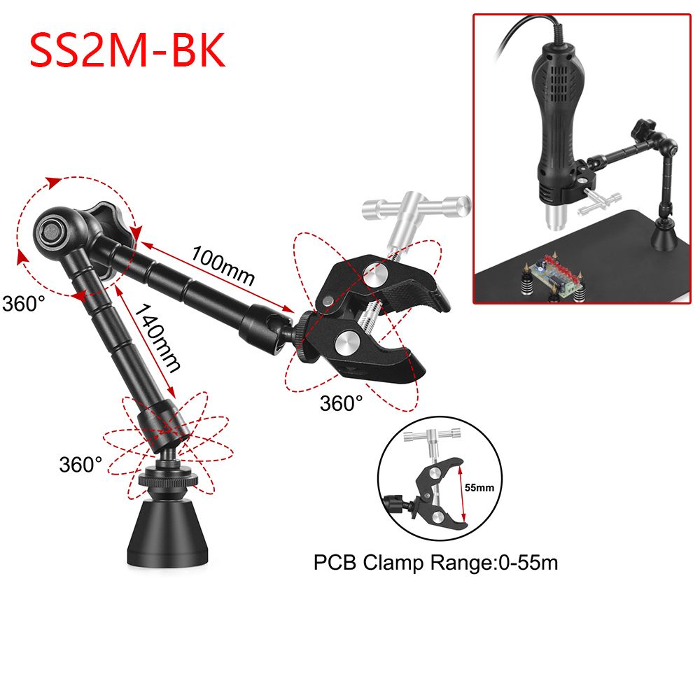 SS2M-BK NEWACALOX Support de pistolet thermique pour la soudure, cadre pour carte PCB, aide pour les mains, avec loupe LED 3X, outil pour appareil à air chaud ""Nipseyteko