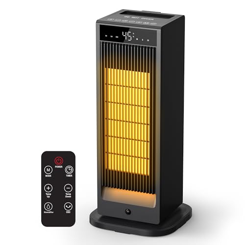 Chauffage d'appoint Électrique Portable 2000W, Chauffage Soufflant en Céramique PTC avec Télécommande,Rotation à 90°, Humidification, Minuterie 12h, Protection Anti-basculement et Contre la Surchauffe