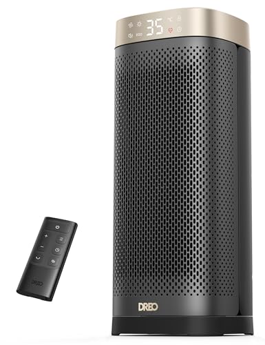 DREO Chauffage soufflant céramique 2000 W économe et silencieux avec thermostat, minuterie 12 h, 3 modes, oscillation 70°, protection anti-surchauffe et anti-basculement, Solaris Slim H2, Or