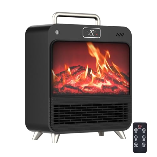 Chauffage d’appoint Soufflant en Céramique PTC 1500 W Économie d’énergie, thermostat, effet poêle à bois - Confort silencieux pour chambre - Protection surchauffe et anti-basculement