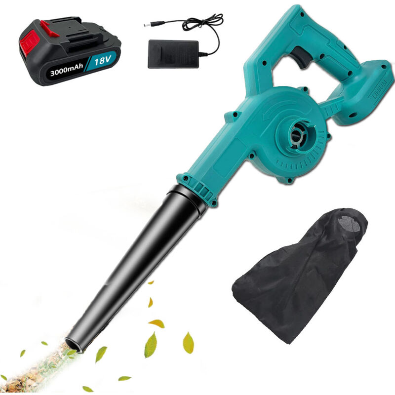 Souffleurs de feuilles électriques, souffleur de feuilles sans fil robuste 2 en 1, souffleur de feuilles à air comprimé + 1 batterie 3,0 A + chargeur