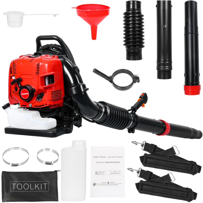 Souffleur à feuilles à essence - 63 CC - 2 temps - Avec sac à dos à essence - Avec sangle rembourrée améliorée - Souffleur de jardin à dos portatif