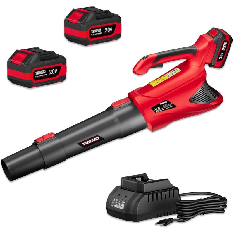 Teeno – Souffleur à feuilles sans fil 20V – Débit d'air 680 m³/h – Vitesse 50 m/s – 5 modes de vitesse – Autonomie 10-25 min