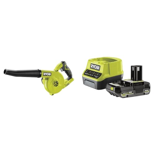 Ryobi - Souffleur d'atelier 18V - 3 Vitesses - jusqu'à 200 km/h - livré avec 1 Batterie 2Ah et 1 Chargeur Rapide