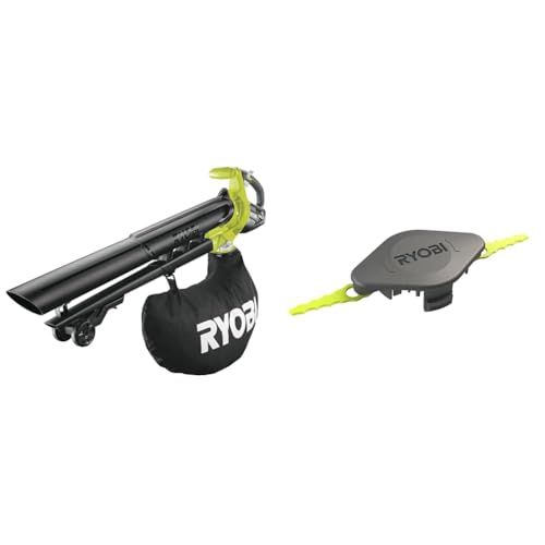 RYOBI - Souffleur Électrique sans Fil Aspiro-Broyeur à Batterie 18V One+ Brushless & Tête Double Lames Dentelées (+10 Lames) pour Coupe-Bordures, Dresse-Bordures - Spéciale Herbes Hautes/Épaisses
