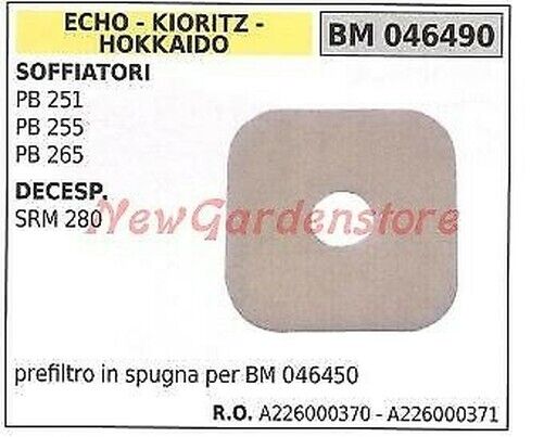 Pré-filtre Air En Éponge Echo Souffleur Pb 251 255 Débroussailleuse Srm 280 0464
