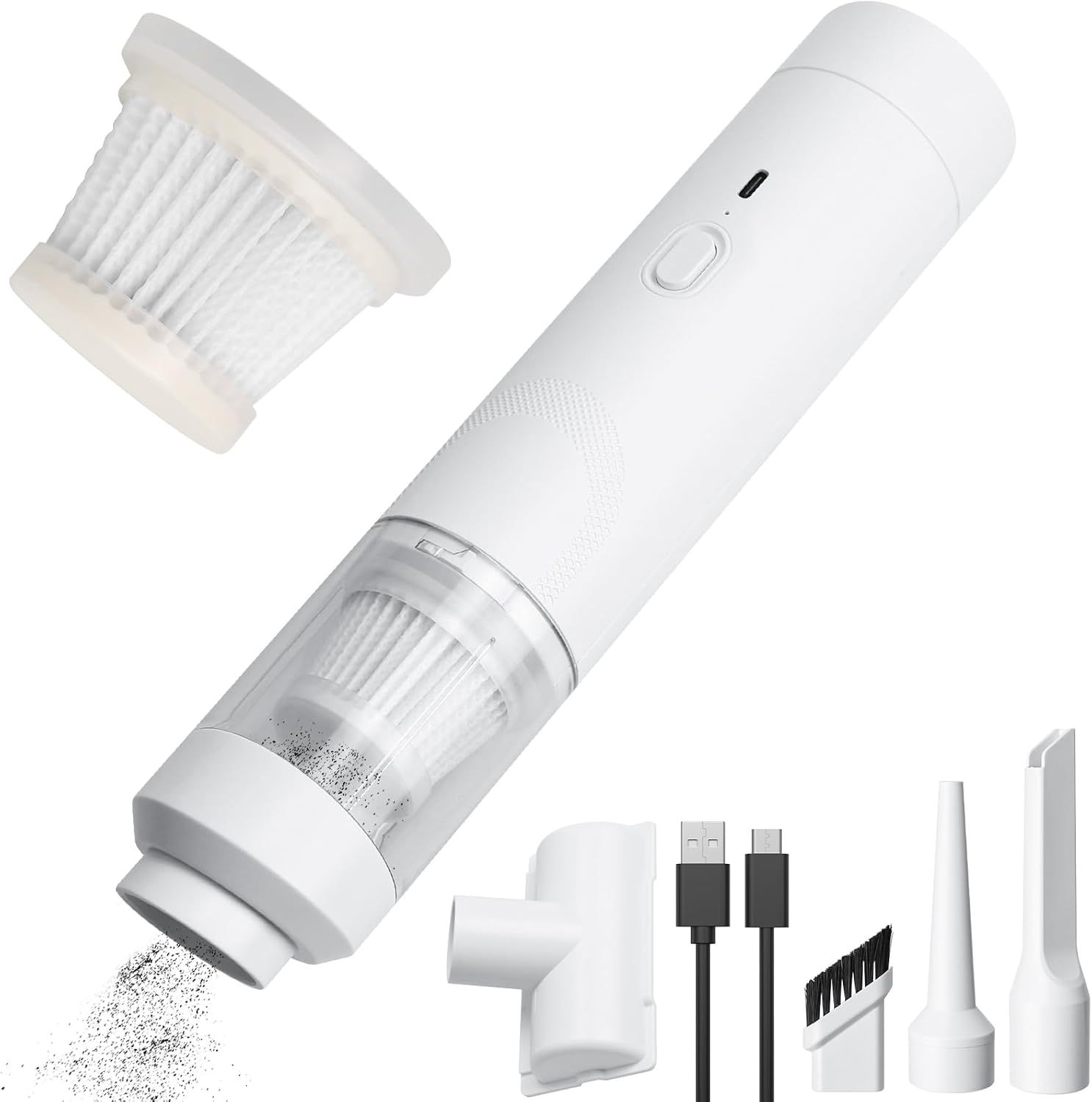 MELLYD Aspirateur Voiture Puissant, 12000pa Haute Puissance Et Charge USB Souffleur Pc LéGer Et Portatif Souffleur Poussiere, Peut Nettoyer Les Claviers,CanapéS,White
