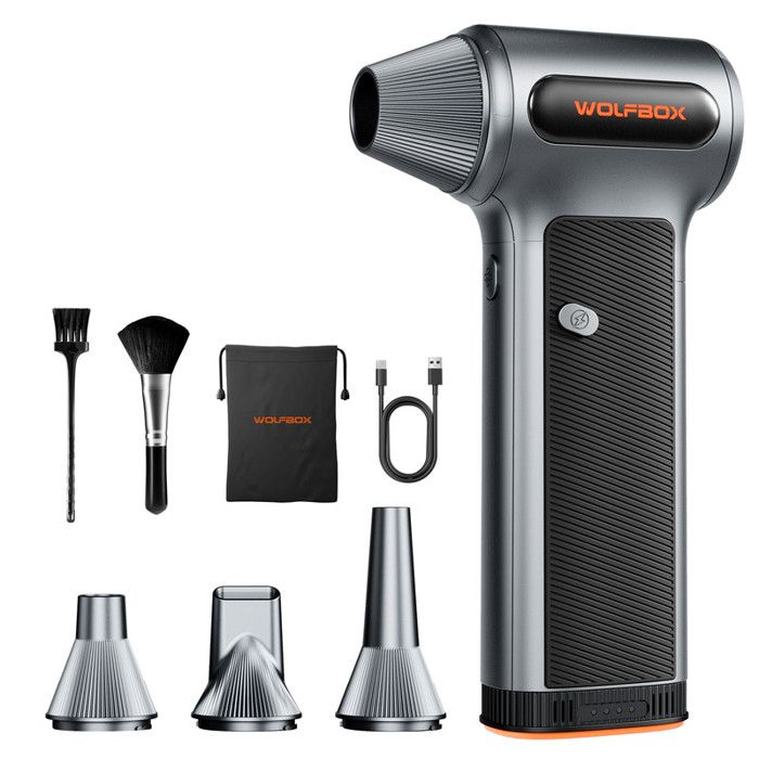 Air Duster Électrique WOLFBOX MF200 – 3 Vitesses Batterie Amovible 4 Buses Souffleur Puissant pour PC Clavier et Voiture