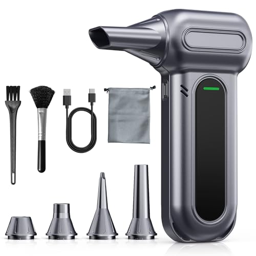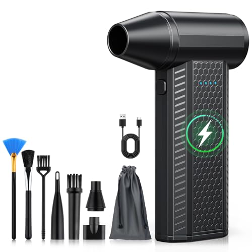 FOURQ Souffleur Air Comprimé avec,130000 TR/Min Souffleur avec Batterie 4000mAh,4 Vitesses Mini Souffleur Sans fil Puissant avec Brosses de Nettoyage PC pour Voiture, Maison, Clavier (noir)
