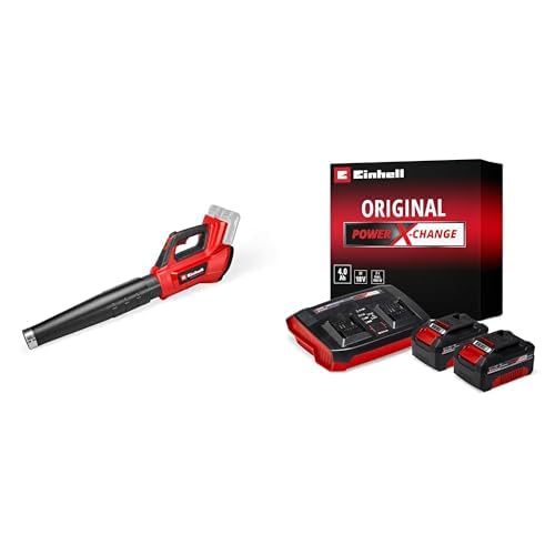 Einhell Tondeuse à Gazon sans Fil GE-CM 36/36 Li (Power X-Change, Moteur sans Charbon,Hauteur de Coupe à 6 Positions, avec 2 Batteries 4 Ah + 2 chargeurs) + Souffleur sans Fil GE-UB 18/250 Li E