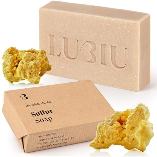 lubiu Savon au Soufre - 100g Savon Visage Acné & Corps - Sans Parfum et Artisanal