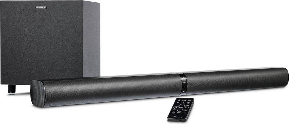 MEDION P64150 2in1 Convertible Bluetooth TV Soundbar with Radio Subwoofer (Barre de son 2.1, 2 x 30 watts, 60 watts subwoofer, montage mural, HDMI ARC avec CEC, AUX, entrée optique)