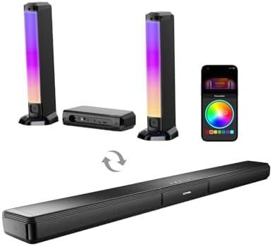 SUBZONAL-5.0ch Barre de Son TV, Barre de Son PC avec RVB pour Home Cinema, Soundbar Amovible avec App Contrôle, Barre de Son Bluetooth 5.3, HDMI-Arc/Opt/AUX, Support Mural, Apollo S70