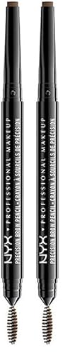 NYX Professional Makeup Crayon à Sourcils Precision Brow, Double-Embout avec Crayon Plat et Goupillon, Teinte : Ash Brown (04) (Lot de 2)