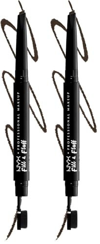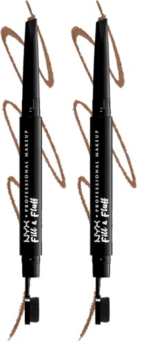 NYX Professional Makeup Crayon à Sourcils Fill & Fluff, Formule à la Pommade Crémeuse, Pointe Précise, Embout Brosse pour Estomper, Espresso (Lot de 2)
