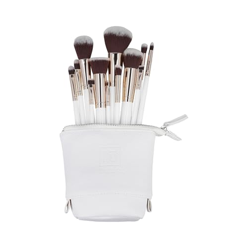 ilū Makeup Basic Brushes 12pz + Case Set White - set de pinceaux - Pinceaux Kabuki Poudre Contouring Blending Lèvres Sourcils - Accessoires Beauté Durables et Élégants