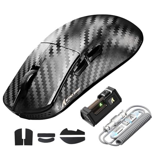 ATTACK SHARK R5 Souris de jeu sans fil ultra fibre de carbone, capteur de jeu PixArt PAW3950MAX, 42000 DPI, 8000 Hz, MCU Nordic 52840