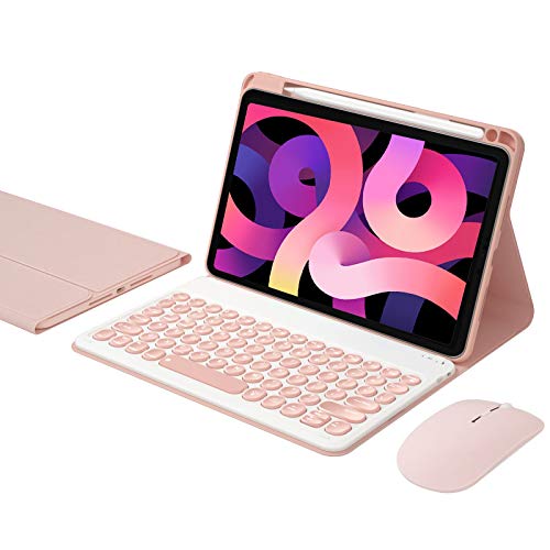 HENGHUI Étui avec clavier et souris Bluetooth pour iPad Air 4e génération avec joli clavier coloré et capuchon de clavier de couleur amovible, pour Air4 11" (PadAir4, rose)