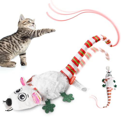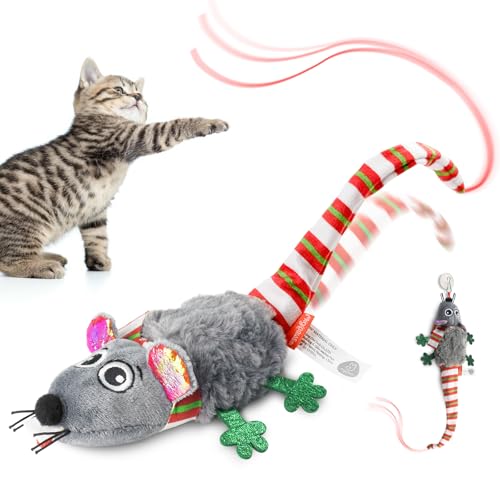 Migipaws Jouet électrique pour Chat, Souris électrique, Jouet avec Queue remuante et Herbe à Chat, Rechargeable
