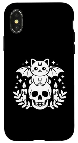 Kawaii Squelette de Chauve-Souris Chat Gothique Pastel Coque pour iPhone X/XS