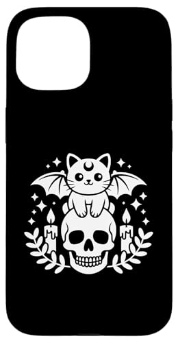 Kawaii Squelette de Chauve-Souris Chat Gothique Pastel Coque pour iPhone 15