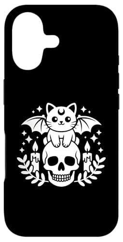 Kawaii Squelette de Chauve-Souris Chat Gothique Pastel Coque pour iPhone 16