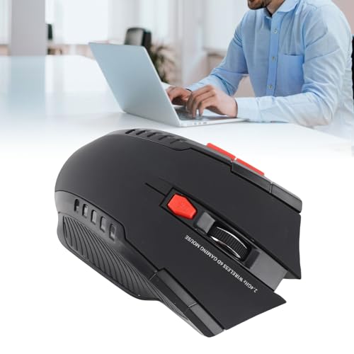 Souris de Jeu sans Fil, Souris D'Ordinateur Ergonomique pour Les Jeux, Souris Optique pour Ordinateur Portable 2,4 GHz 6 Touches DPI Réglable Noir Blanc (Noir)