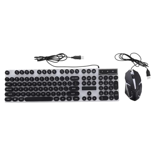 Gatuida Ensemble Clavier et Souris USB Rétro Punk pour Gamer, Souris Ergonomique Ambidextre Molette Antidérapante 3d, Clavier Rétroéclairé Rgb Touches Rondes, Câble Usb, Accessoires PC Ordinateur Noir
