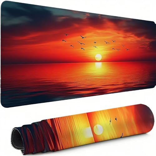 Tapis de Souris Gamer Rouge Tapis Souris XXL 800 x 400 mm, sous Main Bureauavec Bords Cousus, Coucher de Soleil Mouse Pad avec Caoutchouc Antidérapant, pour Le Bureau Et La Maison, Cadeaux C-2580