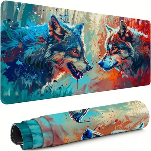 Tapis de Souris XXL Loup 1600x800x3mm Antidérapant Rubber Base Tapis de Souris Gamer Rouge Précision Compatible Toutes Mouse, Revêtement Doux Imperméable Protege Bureau pour Home Bureau Gaming xg-676