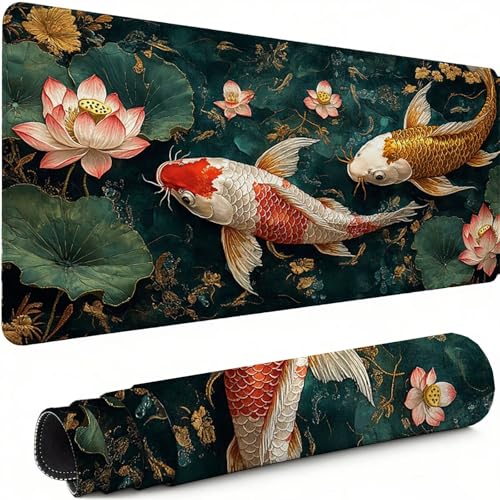 Tapis de Souris Gamer Poisson Rouge Tapis Souris XXL 1200 x 600 mm, sous Main Bureauavec Bords Cousus, Fleur Mouse Pad avec Caoutchouc Antidérapant, pour Le Bureau Et La Maison, Cadeaux C-1001