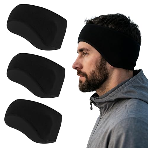 Lot de 3 bandeaux d'hiver pour femme - Noir - Bandeau de sport et cache-oreilles - Coupe-vent pour jogging, course, cyclisme et sous casque de vélo - Bandeau de sport pour femme