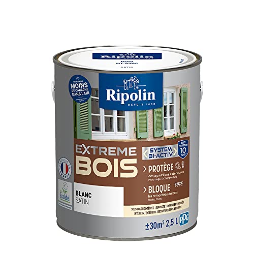 RIPOLIN - Peinture pour Bois Intérieur/Extérieur - Sans Sous-couche Ultra-couvrant - Résiste aux Intempéries, UV et Chocs - Protège et Magnifie - Lessivable - Satin - 2,5L - Blanc