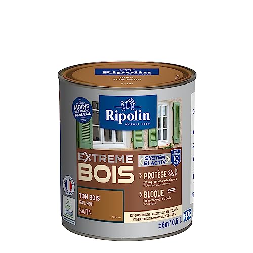 RIPOLIN - Peinture pour Bois Intérieur/Extérieur - Sans Sous-couche Ultra-couvrant - Résiste aux Intempéries, UV et Chocs - Protège et Magnifie - Lessivable - Satin - 0,5L - Ton Bois