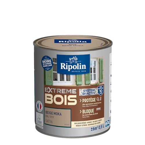 RIPOLIN - Peinture pour Bois Intérieur/Extérieur - Sans Sous-couche Ultra-couvrant - Résiste aux Intempéries, UV et Chocs - Protège et Magnifie - Lessivable - Satin - 0,5L - Beige Moka