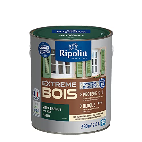 RIPOLIN - Peinture pour Bois Intérieur/Extérieur - Sans Sous-couche Ultra-couvrant - Résiste aux Intempéries, UV et Chocs - Protège et Magnifie - Lessivable - Satin - 2,5L - Vert Basque