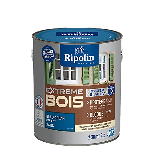 RIPOLIN - Peinture pour Bois Intérieur/Extérieur - Sans Sous-couche Ultra-couvrant - Résiste aux Intempéries, UV et Chocs - Protège et Magnifie - Lessivable - Satin - 2,5L - Bleu Ocean