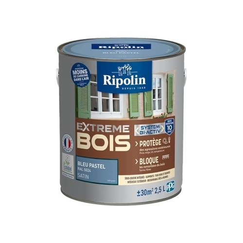 RIPOLIN - Peinture pour Bois Intérieur/Extérieur - Sans Sous-couche Ultra-couvrant - Résiste aux Intempéries, UV et Chocs - Protège et Magnifie - Lessivable - Satin - 2,5L - Bleu Pastel