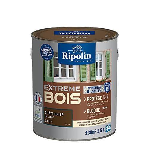 RIPOLIN - Peinture pour Bois Intérieur/Extérieur - Sans Sous-couche Ultra-couvrant - Résiste aux Intempéries, UV et Chocs - Protège et Magnifie - Lessivable - Satin - 2,5L - Chataignier