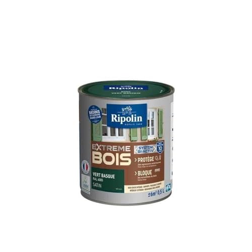 RIPOLIN - Peinture pour Bois Intérieur/Extérieur - Sans Sous-couche Ultra-couvrant - Résiste aux Intempéries, UV et Chocs - Protège et Magnifie - Lessivable - Satin - 0,5L - Vert Basque