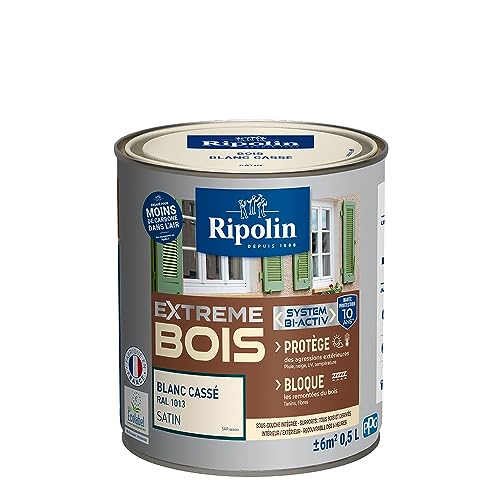 RIPOLIN - Peinture pour Bois Intérieur/Extérieur - Sans Sous-couche Ultra-couvrant - Résiste aux Intempéries, UV et Chocs - Protège et Magnifie - Lessivable - Satin - 0,5L - Blanc Casse