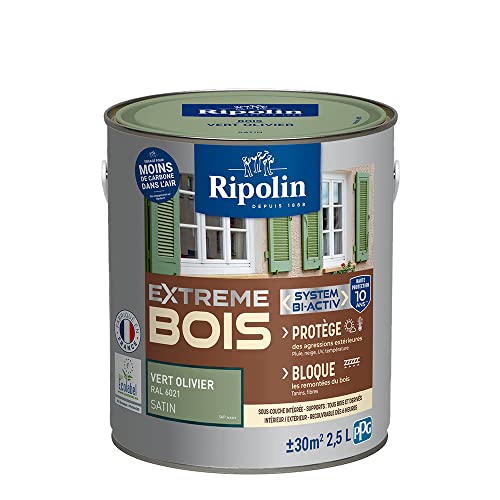RIPOLIN - Peinture pour Bois Intérieur/Extérieur - Sans Sous-couche Ultra-couvrant - Résiste aux Intempéries, UV et Chocs - Protège et Magnifie - Lessivable - Satin - 2,5L - Vert Olivier