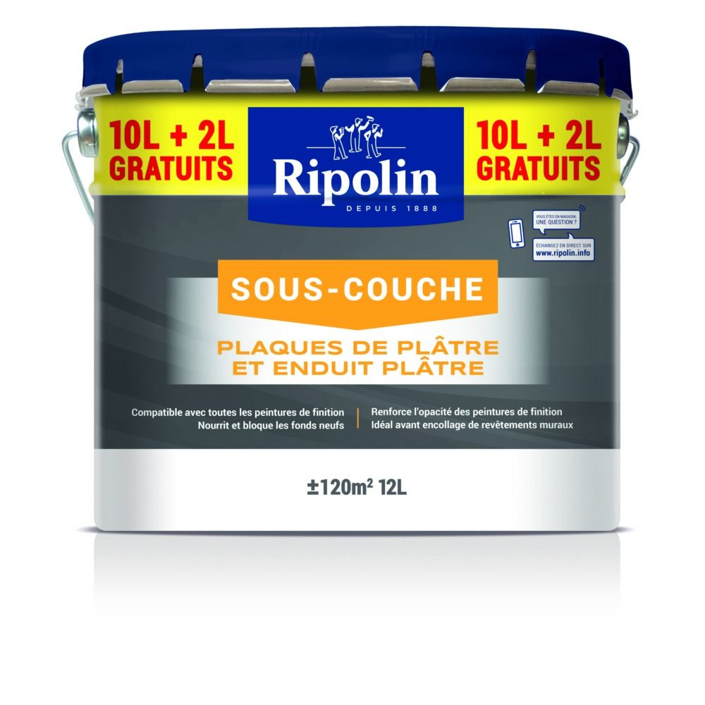 Peinture sous-couche plaque de platre - RIPOLIN - 290380 - Blanc - Mat - 12 L