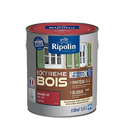 RIPOLIN - Peinture pour Bois Intérieur/Extérieur - Sans Sous-couche Ultra-couvrant - Résiste aux Intempéries, UV et Chocs - Protège et Magnifie - Lessivable - Satin - 2,5L - Rouge Vif